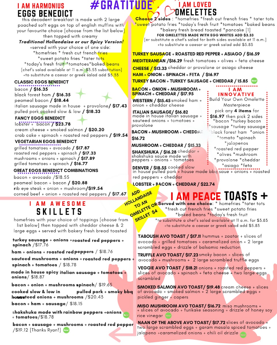 I liked this diner a lot! The interior was bright and colourful, with pictures of classic stars and vintage records adorning the walls. Even the fixtures gave the place a nice retro feel. The place is of a good size, but it wasn't crowded around 2pm on Saturday. The menu is huge, with so many options that you'll be inclined to come back to try something new. This visit we tried the breakfast poutine and breakfast lasagna as they sounded unique. Both were delicious and very filling, and were of good value considering the price. Overall, I'm looking forward to visiting again. This is a place you'd want to go whether you're looking for a nice nostalgic joint or hearty hangover food (I won't tell you which reason I came here for).