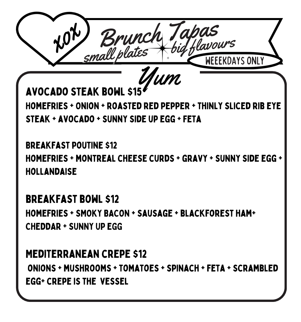 Served with two large soft scrambled eggs on a gourmet bun with chipotle mayo, cheddar cheese, and caramelised onions for extra nirvana add bacon and avocado.